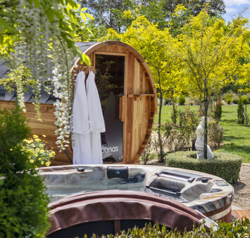 The Spa Retreat: Exclusive use of the private Cedar Barrel Sauna and deluxe outdoor Hot Tub, complete with luxury waffle-weave robes.