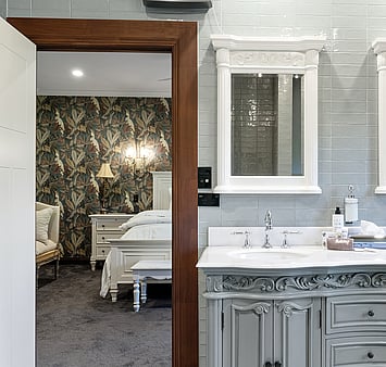 Guest Suite Four: Two luxurious King Single beds (Twin Room), with access to a shared full bathroom.